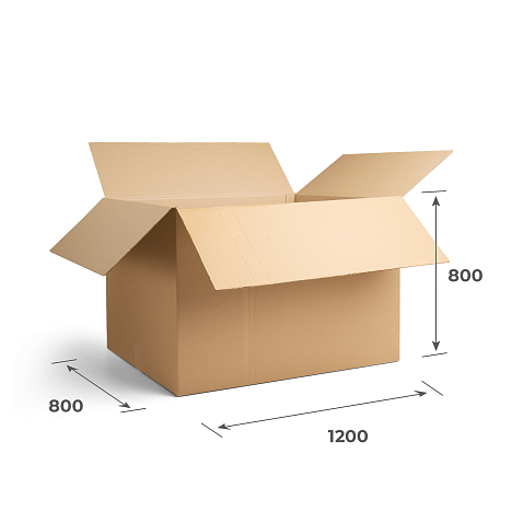 Картонная коробка 1200х800х800 производится из пятислойного гофрокартона П-32 в буром цвете. Данный материал отличается экологичностью и не вреден для окружающей среды. Это четырехклапанный гофрокороб, который относится к модели FEFCO 0201.