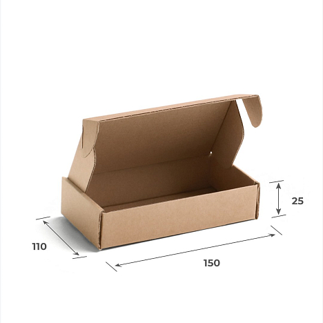 Самосборная коробка 150х110х25 Т-11 профиль E бурый изготовлена из микрогофрокартона.