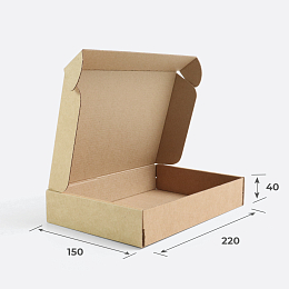 Гофрокороб 212х151х50 самосборный с усиленными торцевыми стенками и откидной крышкой. Универсальная самосборная конструкция коробки легко собирается по заранее вырубленным в процессе производства биговкам.