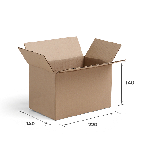 Гофрокороб 4-х клапанный 220х140х140 Эконом — практичная тара, которая может применяться в любой сфере. Собирается и склеивается скотчем за пару минут. Может быть использована для хранения различных товаров или как транспортировочная упаковка.