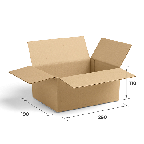 Гофрокороб размера 250x190x110 продается в нашем магазине от 20 штук.