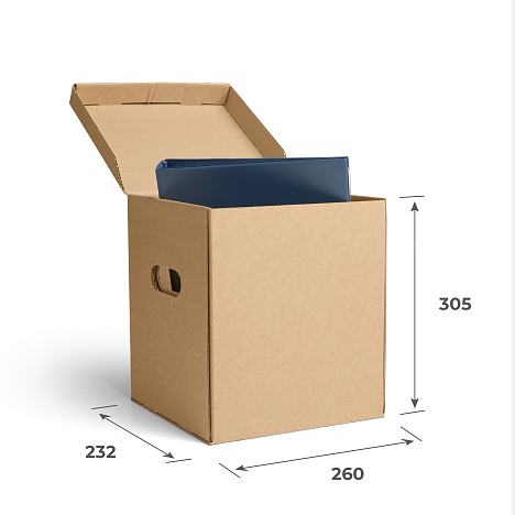 Архивный гофрокороб 260х232х305 выполненный из трехслойного гофрокартона.