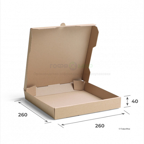 Коробка для пирогов 260x260x40 выполнена из гофрированного трехслойного картона марки Т-11 Е. В нашем интернет-магазине вы можете заказать данную модель в буром и белом цвете. Конструкция картонного короба относиться к сборному типу, в каталоге FEFCO 0426. Его можно использовать для хранения и транспортировки продуктов, например, пирогов или пицц. Вес, который может выдержать данная коробка составляет 3 кг.