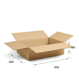 Гофрокороб 270х220х120 самосборный с усиленными торцевыми стенками и откидной крышкой. Универсальная самосборная конструкция коробки легко собирается по заранее вырубленным в процессе производства биговкам.