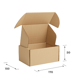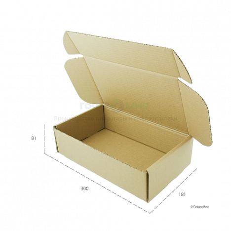Самосборный гофрокороб 300x181x81 изготовлен из бурого трехслойного гофрокартона марки Т-23 профиля В. Характеристики короба: длина - 300 мм, ширина - 181 мм, высота - 81 мм. Тара имеет очень популярную конструкцию "шкатулка" по каталогу FEFCO 0427 с откидной крышкой и фиксирующими ушками на ней. Такая упаковочная коробка подходит для мелких и хрупких товаров.
