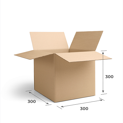 Гофрокороб 4-х клапанный 300x300x300 марки Т-23 бурого цвета самый универсальный вид упаковки. Короб очень надежный и выдерживает массу до 15 кг благодаря своей прочной конструкции FEFCO 0201. Вы можете купить у нас сайте эти коробки в буром цвете или мы можем изготовить их для вас под заказ в белом.
