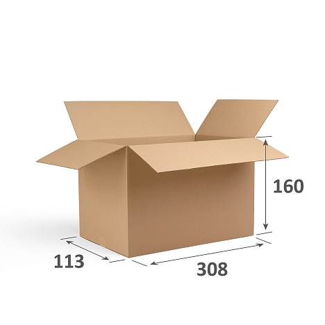 Универсальные коробки из гофрокартона размером 308x113x160 часто используют для переезда, хранения документов и вещей. Минимальный оптовый заказ в нашем интернет-магазине от 20 штук.