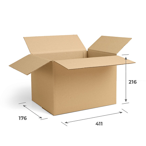 Характеристики и размеры тары: длина — 411 мм, ширина — 176 мм, высота — 216 мм