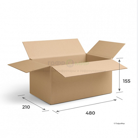 Гофрокороб 4-х клапанный 480х210х155 изготовлен из трехслойного картона бурого цвета марки Т-23. Коробка среднего размера, кратная паллету.