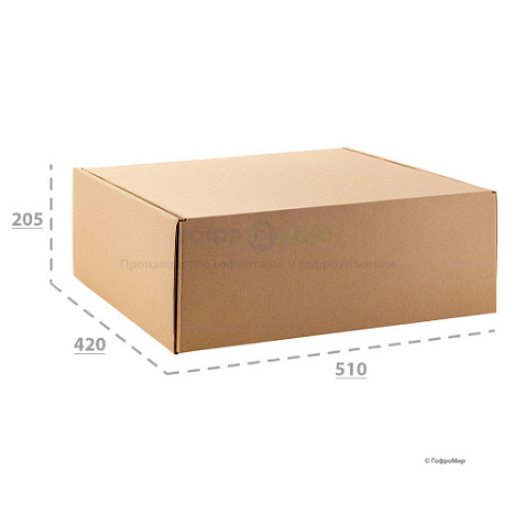 Самосборный гофрокороб 510х420х205 изготовлен из трехслойного гофрокартона марки Т-23 профиля В. Он прочный и легко собирается по отмеченным биговкам. Его можно использовать для любые цели: транспортировки, упаковки товаров, хранения вещей и мелких товаров.