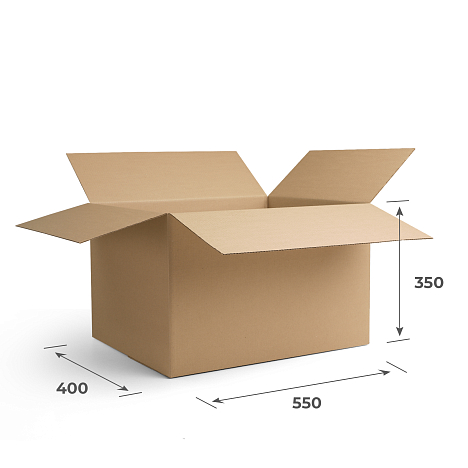 Гофрокороб 4-х клапанный 550x400x350 — практичная тара, которая может применяться в любой сфере. Собирается и склеивается скотчем за пару минут. Может быть использована для хранения различных товаров или как транспортировочная упаковка.