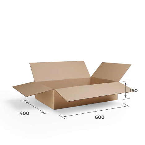 Гофрокороб 4-х клапанный 600х400х150 изготовлен из трехслойного гофрокартона марки Т-23 бурого цвета.