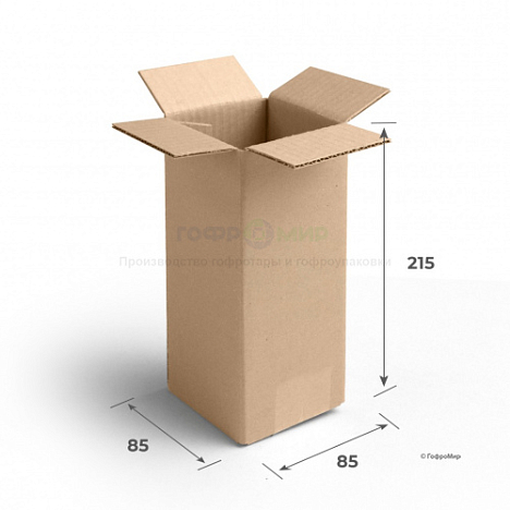 Гофрокороб 4-х клапанный 85х85х215 Эконом — практичная тара, которая может применяться в любой сфере. Собирается и склеивается скотчем за пару минут. Может быть использована для хранения различных товаров или как транспортировочная упаковка.