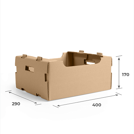 Гофролоток 400x290x170 изготовлен из пятислойного гофрокартона бурого цвета.