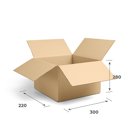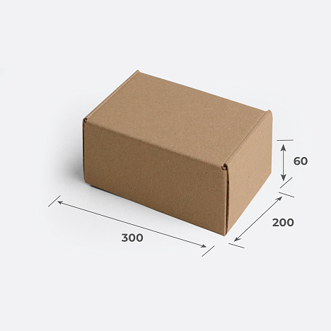 Гофрокороб 300х200х60 самосборный с усиленными торцевыми стенками и откидной крышкой. Универсальная самосборная конструкция коробки легко собирается по заранее вырубленным в процессе производства биговкам.