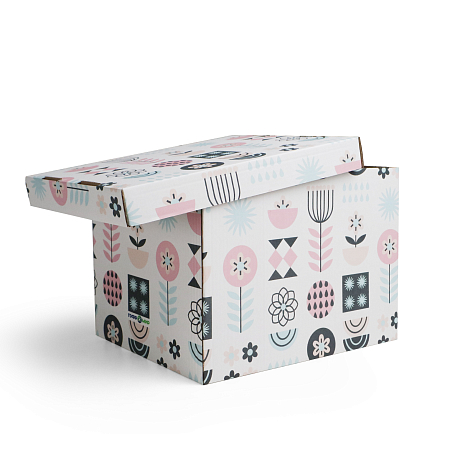 Гофрокороб крышка-дно 400х300х300 изготовлен из трехслойного гофрокатона белого цвета. На изделия нанесена цифровая печать. Модель «крышка-дно», где крышка по каталогу FEFCO 0422, а дно - 0216, очень легкая, компактная и не занимает много места.