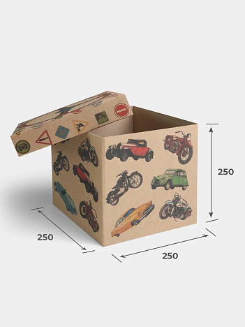 Крышка для картонной коробки 258х258х50 Т23 B Бурый 0422 Машинки