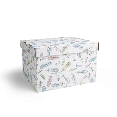 Крышка для картонной коробки 358х258х50 Т24 B 0422 Перья