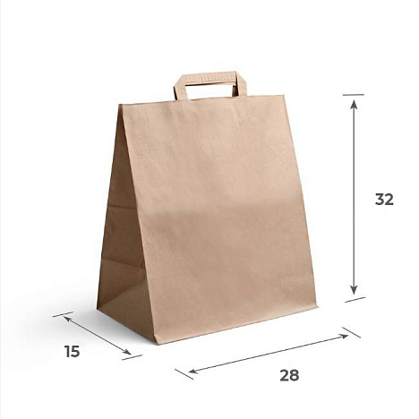 Пакет бумажный 280х150х320 мм, с плоскими ручками, крафт