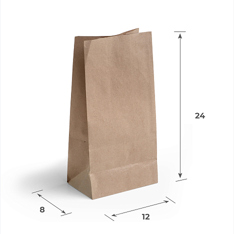 Пакет бумажный 120х80х250 мм, без ручек, крафт