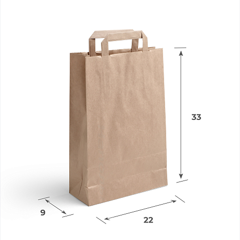Пакет бумажный 220х90х330 мм, с плоскими ручками, крафт
