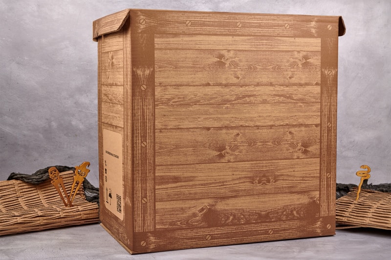 Подарочная коробка из картона специально для почтовой пересылки: держит удар, отталкивает влагу, сохраняет форму под большим давлением.