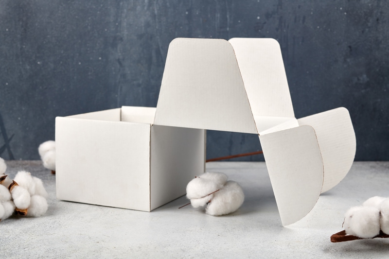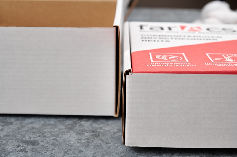 - Модель «крышка-дно». Классическое решение для упаковки нижнего белья. Тара складывается из двух частей: съемной крышки и дна. Верхняя часть может быть глухой или с прозрачным смотровым окошком, что дает возможность покупателю оценить товар, не открывая короб. Это удобный вариант, который позволяет сделать упаковочную конструкцию не только функциональной, но и визуально привлекательной.