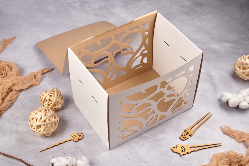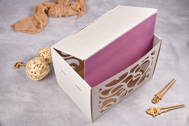 - Коробочка-шкатулка с откидной верхней частью. Также упаковка может дополняться удерживающими замками, которые надежно фиксируют крышку и предотвращают случайное открытие. Это обеспечивает сохранность товара и придает упаковке более изысканный вид.