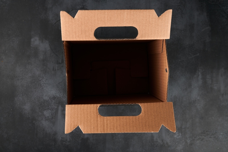 Для оптовых поставок алкогольных напитков используются четырехклапанные ящики с усиленным дном и прорезями для рук, что позволяет эффективно и безопасно доставлять товар в крупных объемах.