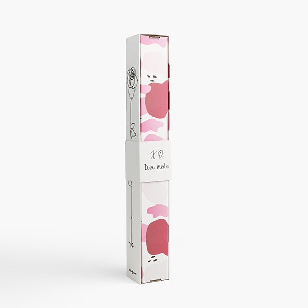 Коробка собирается по линиям сгиба за несколько минут. Данная упаковка идеально подходит для подарочного цветка и будет преимуществом для покупателя, который ищет презент сразу в красивой обертке.