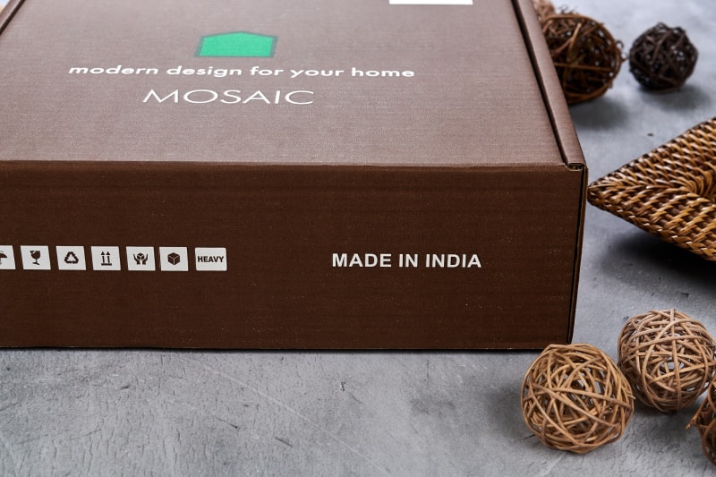 Дизайнер выбрал два цвета для оформления - нефритовый и шоколадно-коричневый. На тару также был нанесен логотип, слоган и манипуляционные знаки (которые предупреждают о том, что внутри упакован хрупкий продукт).