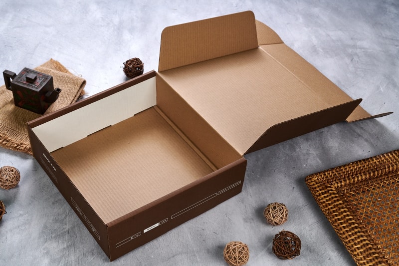 Клиент хотел чтобы гофротара была прочная и выдерживала большой вес, но не требовала склейки. Его продукт достаточно тяжелый, поэтому мы выбрали максимально надежную самосборную конструкцию - FEFCO 0427 (”шкатулка” с откидной крышкой). Тара практичная, многофункциональная, легко собирается по заранее отмеченным биговкам и не нуждается в дополнительной фиксации.