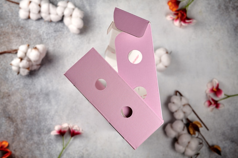 Наш дизайнер совместно с клиентом подбирали цвет по пантону, пока не выбрали идеальный оттенок. В процессе изготовления брендированных картонных коробок использовались 2 техники печати: флексопечать (на внутренней стороне) и безматовая кашировка (на внешней стороне гофроупаковки).