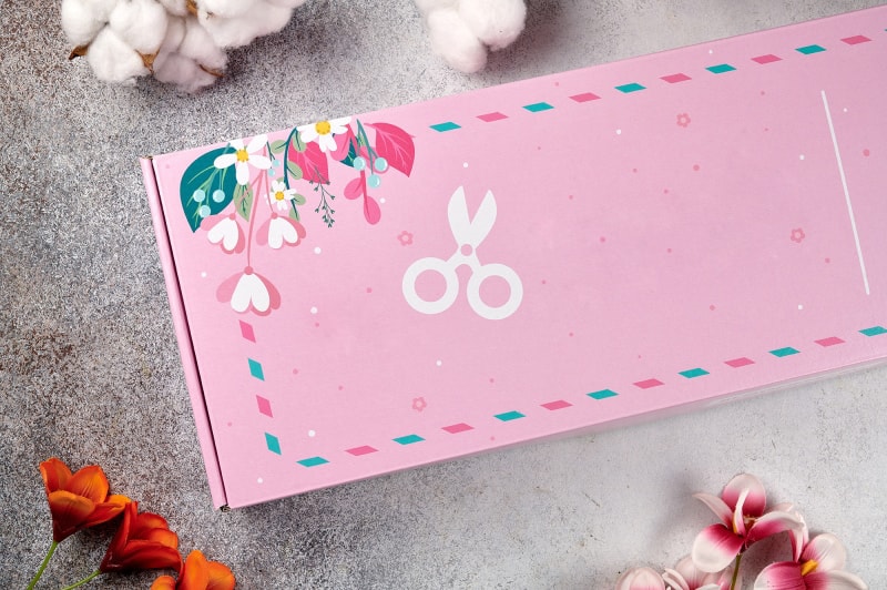 Дизайн этой коробки говорит сам за себя – внутри точно должны быть цветы. Нежные оттенки розового, бирюзового, зеленого, голубого – все эти цвета присутствуют на упаковке и придают ей дополнительный шарм.