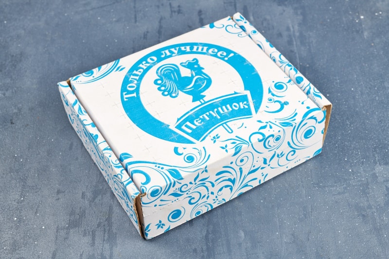 Производитель леденцов «Золотой петушок» заказал коробку для конфет, но не простую, а универсальную. Чтобы при транспортировке в нее конфеты положить, а во время торговли красиво петушков в крышку воткнуть и продать. И чтобы упаковка из картона была белая-белая, с элементами оформления в древнерусском стиле и с петушком на логотипе.