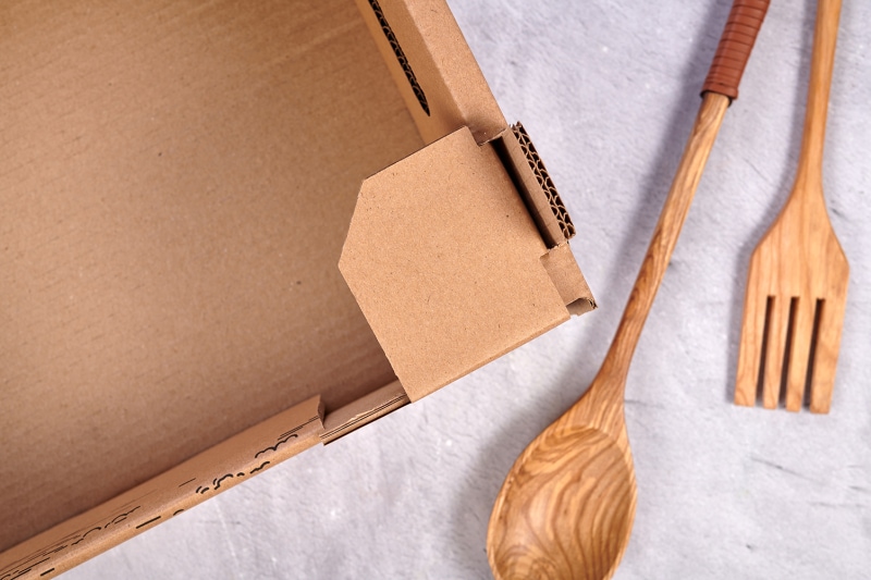 Так как клиент не смог выбрать необходимую конструкцию из уже готовых коробов, мы предложили взять за основу лоток FEFCO 0422 и доработать тару конкретно под его потребности. Мы учли все особенности его продукта и посоветовали дополнить гофролоток вырубными ручками и закрытыми сверху уголками (чтобы тары удобно было ставить одну на другую, не повреждая конструкции).