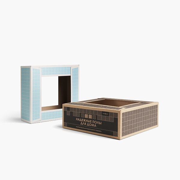 Ориентируясь на эти качества мы подготовили такую упаковку под плитку, которая оборачивает её со всех сторон, оставляя при этом окошки для демонстрации товара.
