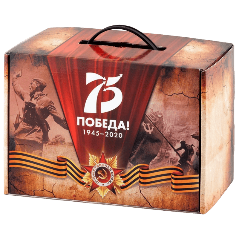 Подумали и о ветеранах, которые получат подарки в нашей упаковке. Чтобы коробку было удобно нести в руках и использовать для хранения вещей, мы добавили широкую пластиковую ручку и превратили коробку в удобный картонный чемоданчик.