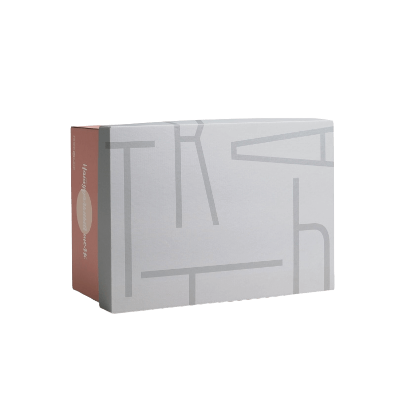 В основе дизайна — заливка крышки и дна приглушенными серо-голубым и розовым оттенками. Акцент делается на слове “Ткань”, которое выполнено разреженным шрифтом. Группа компаний Гофромир осуществляет полный цикл разработки упаковки, что включает в себя разработку или адаптацию дизайна и нанесение печати.